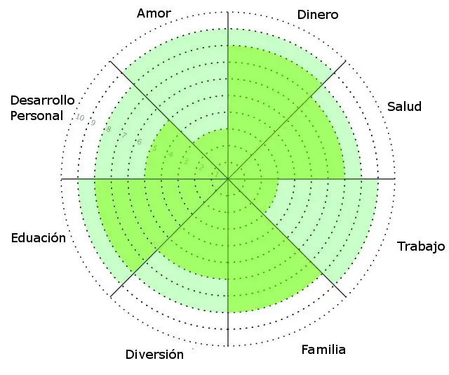 La idea es que la rueda debe ser lo más circular posible. Una rueda desequilibrada indica que la persona está prestando demasiada atención a un área mientras descuida otras, lo que puede llevar a una vida desbalanceada y posiblemente a la insatisfacción general.